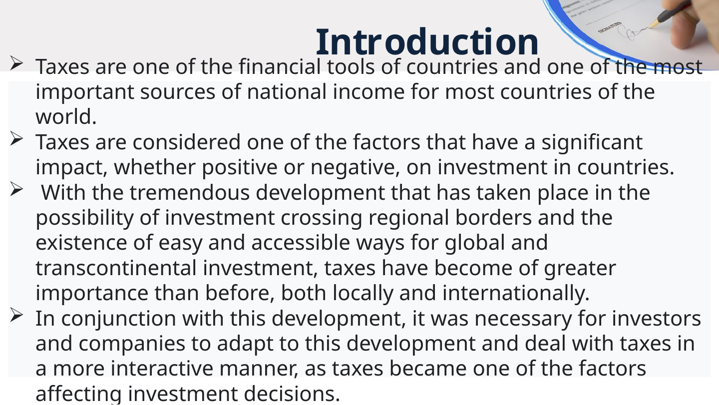 Taxes are among the most important sources of national income, and they materially influence investment decisions—positively or negatively—especially as cross-border investment becomes easier and more widespread.