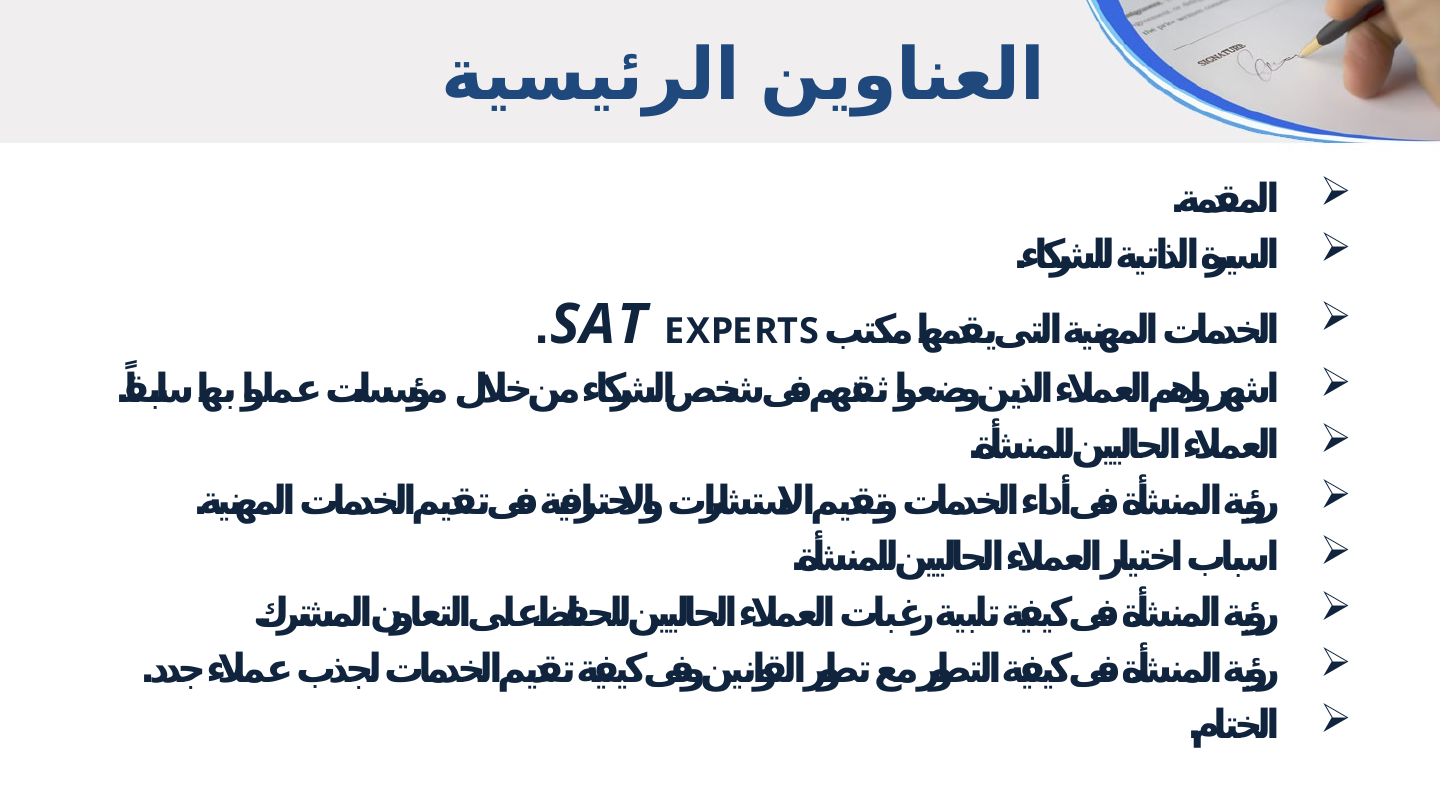 - المؤهلات العلمية والخبرات السابقة لدى شركاء المكتب