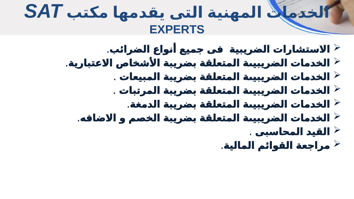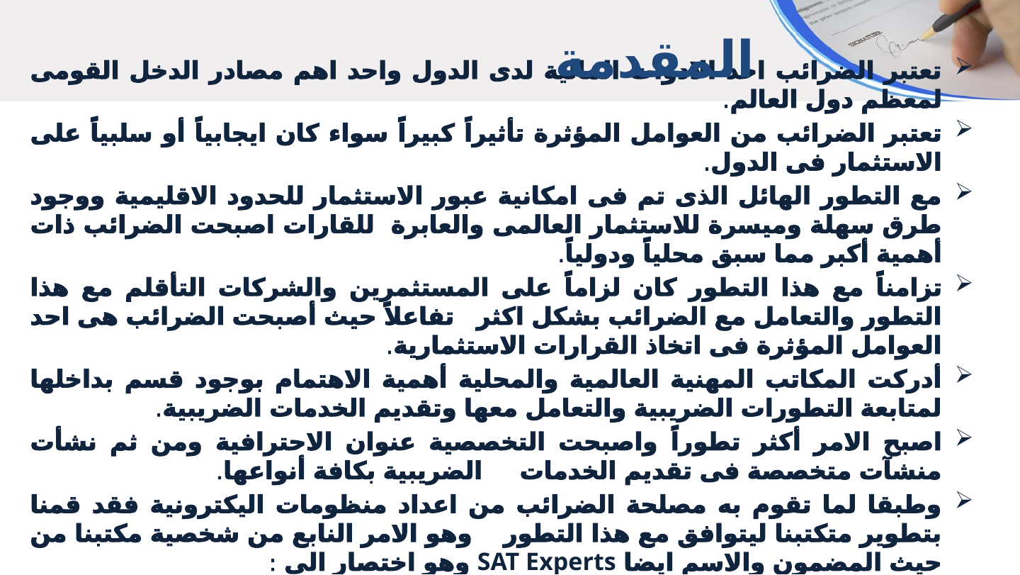 قام مكتب SAT Experts (Smart Accounting and Taxation) بتطوير خدماته للتوافق مع تطور منظومات مصلحة الضرائب الإلكترونية، مع التركيز على التخصصية كعنوان للاحتراف.